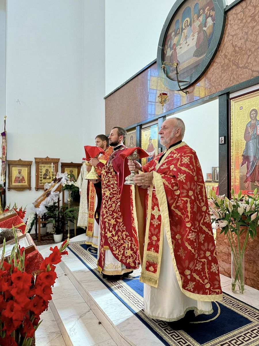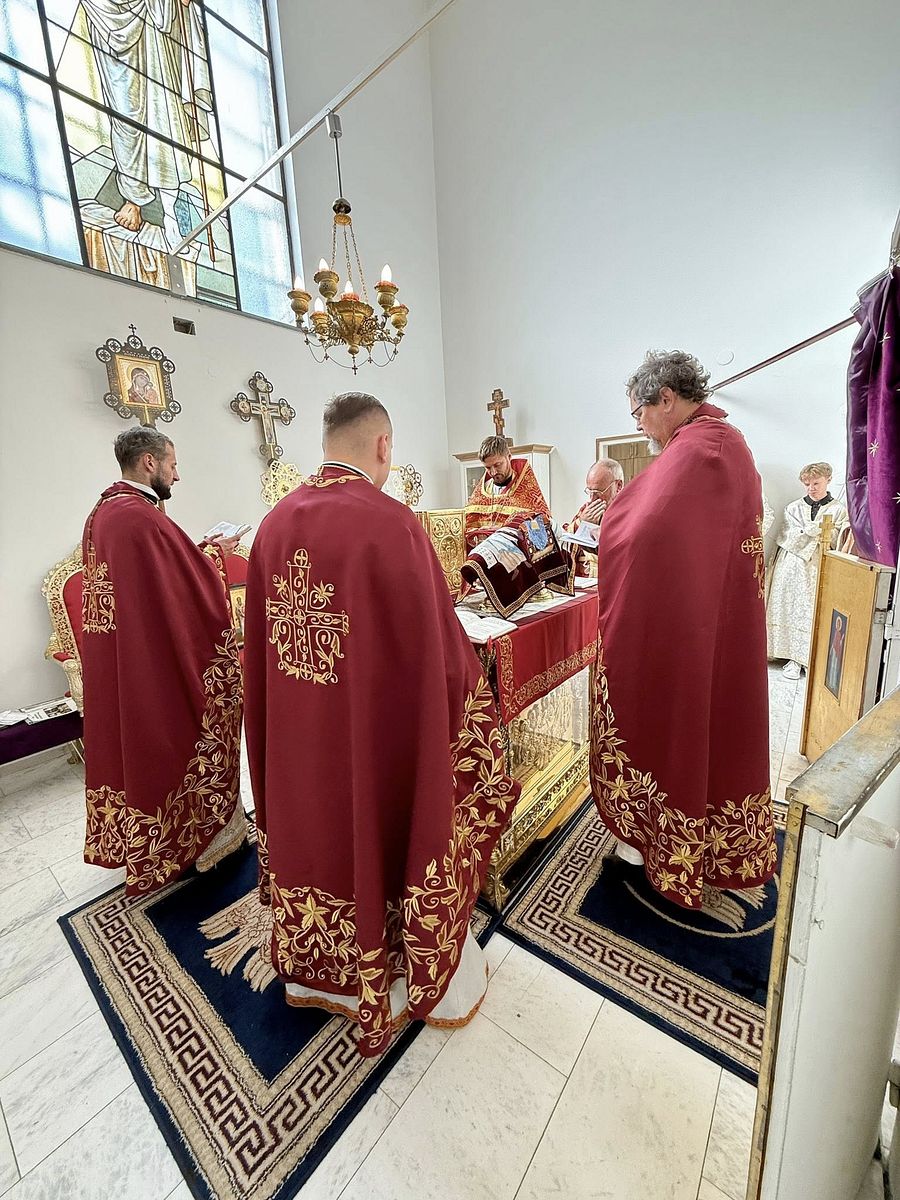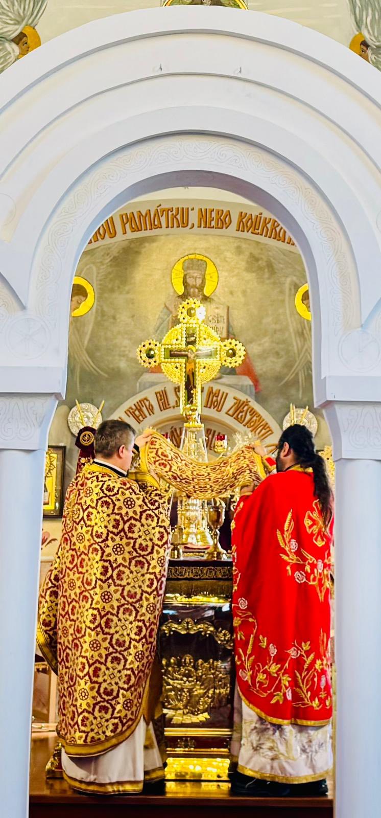 Po posvěcení prestolu se konala večerní bohoslužba, při které se zpíval tropar svátku Povýšení svatého Kříže (jehož opuštění na sobotu připadlo) a tropar sv. Janu Křtiteli, jemuž byl prestol zasvěcen.