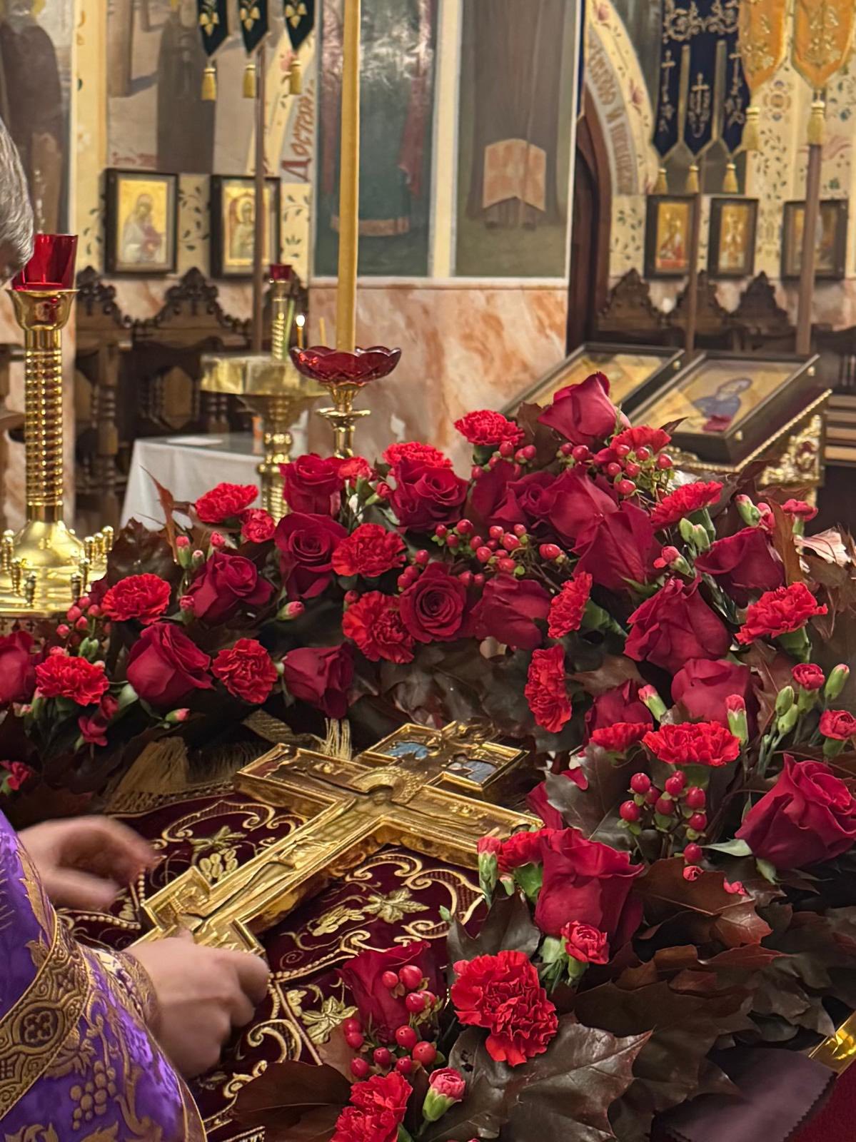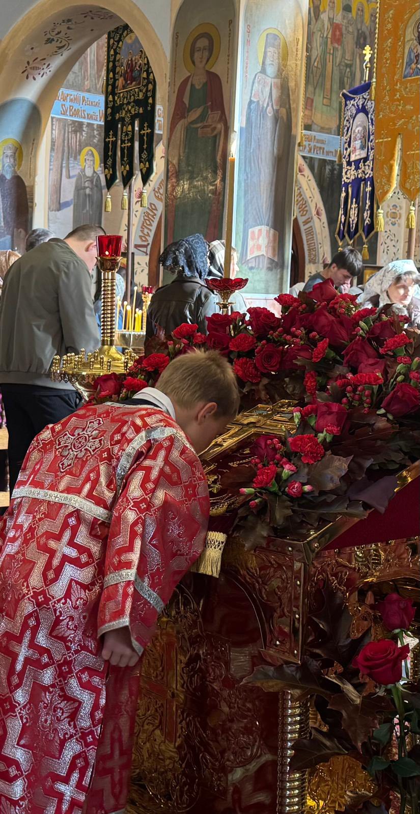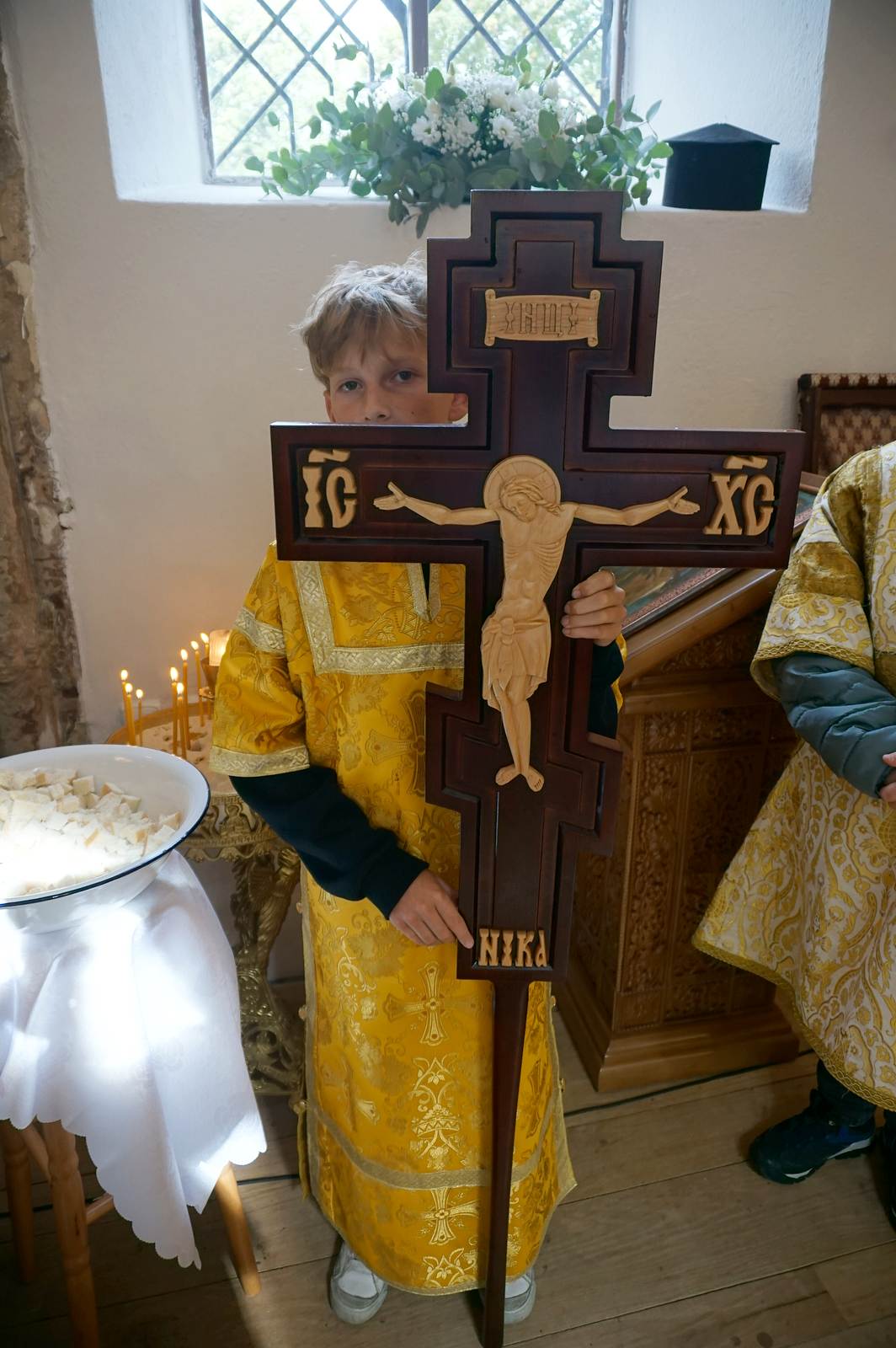 Po posvěcení prestolu se konala večerní bohoslužba, při které se zpíval tropar svátku Povýšení svatého Kříže (jehož opuštění na sobotu připadlo) a tropar sv. Janu Křtiteli, jemuž byl prestol zasvěcen.