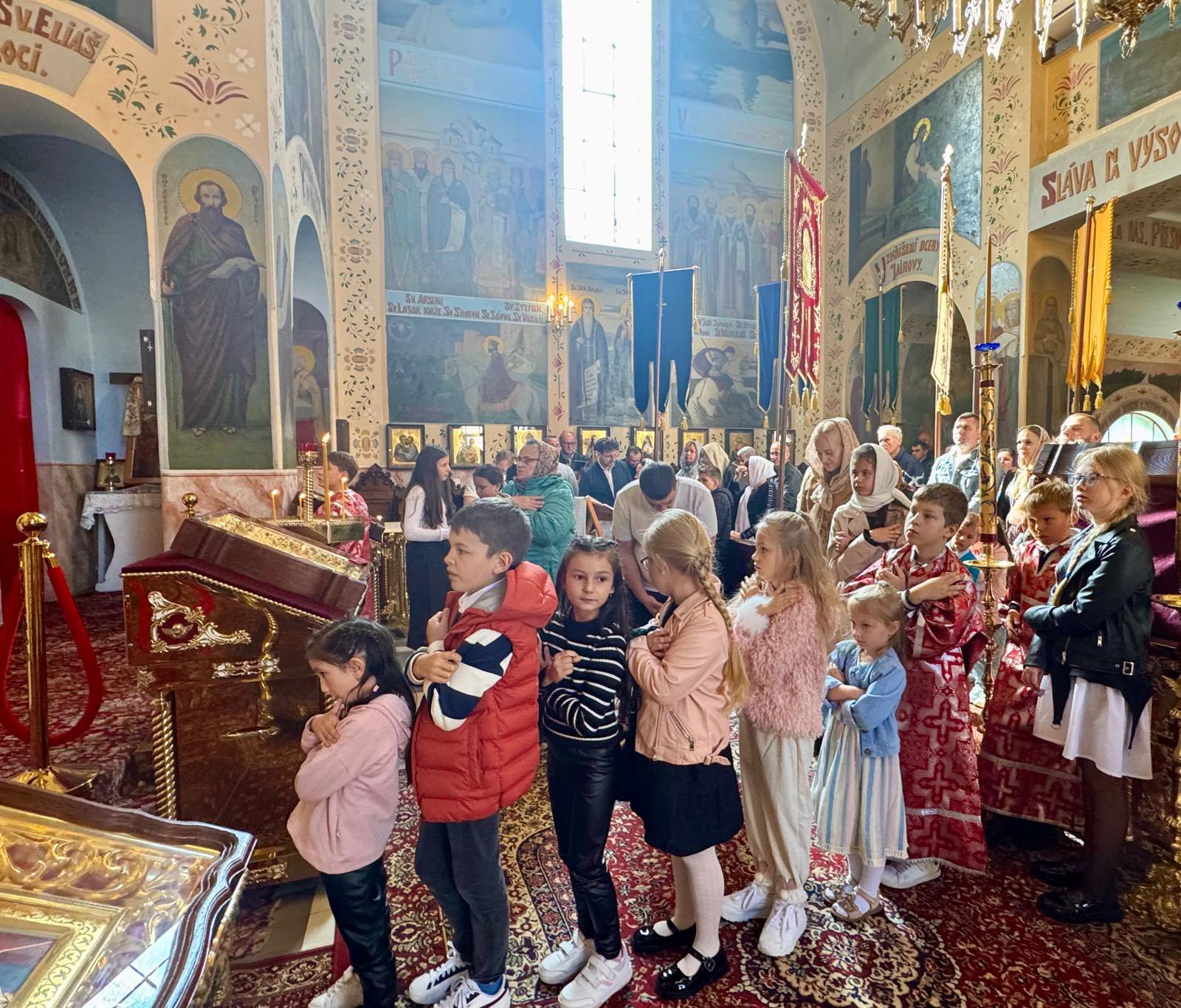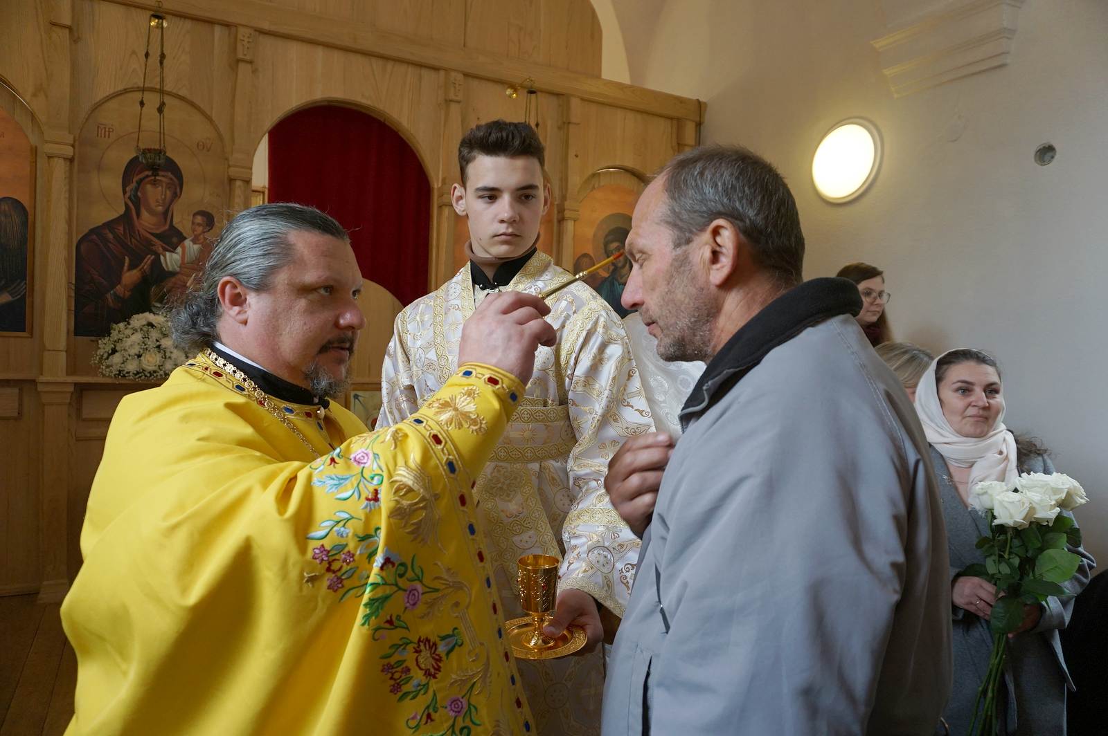 Při kázání se na přítomné věřící z Ukrajiny obrátil otec Aleksij Kukhta z Olomouce a rusínsky krásně pohovořil o tom, co znamená pro věřícího člověka chrám. Zdůraznil, jak blahodárné je mít svůj chrám, chodit tam na modlitbu a chodit tam sloužit Bohu. Jaké dobro tam Bůh rozdává všem, kteří tam přicházejí. Kazatel svou promluvu protkával lidovou moudrostí, takže bylo pro naše bratry z Ukrajiny vskutku poutavé.
