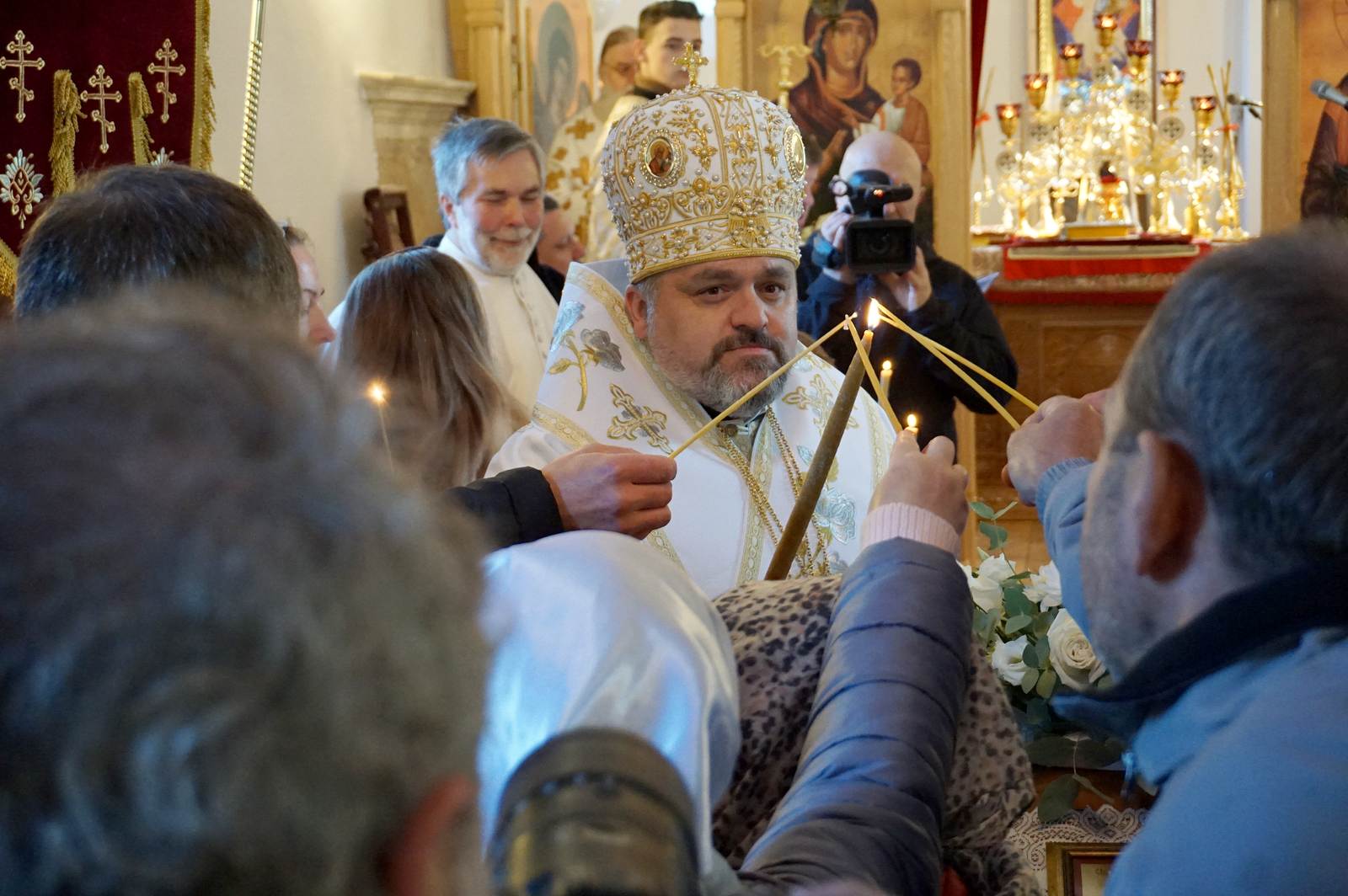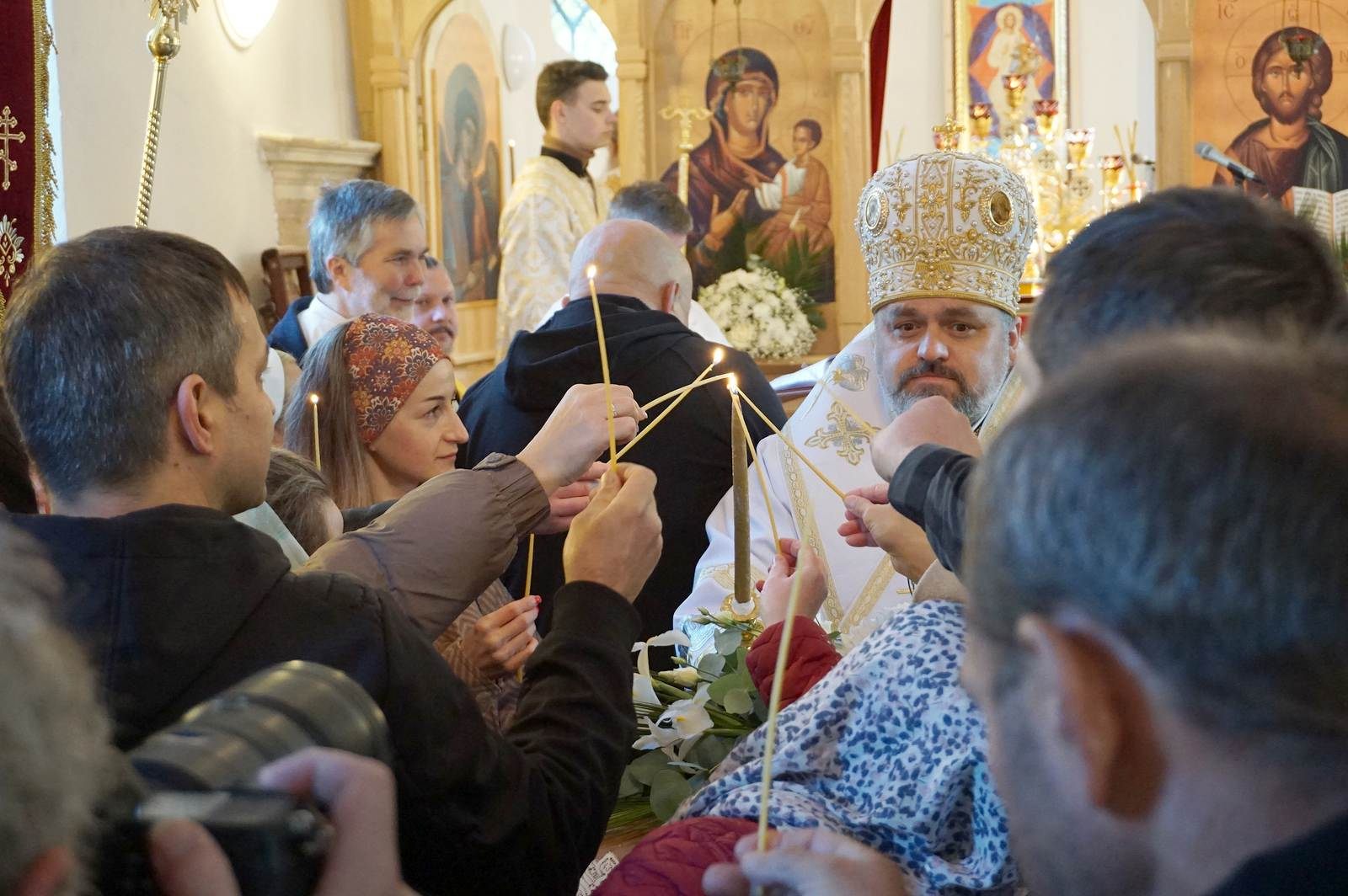 Nakonec tohoto obřadu vyšel z oltáře s hořící svící, kterou požehnal lid, řka: Světlo Kristovo osvěcuje všechny! A věřící přistupovali zažehnout si svíčky od vladyky.