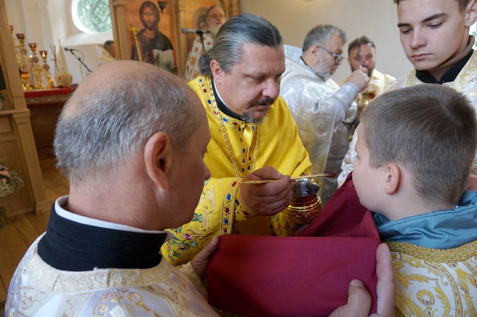 Načež začala archijerejská božská liturgie. Za zpěvu antifon postřihl vladyka našeho věřícího, bratra Vasilije na stupeň žalmisty a udělil mu hodnost hypodiákona.