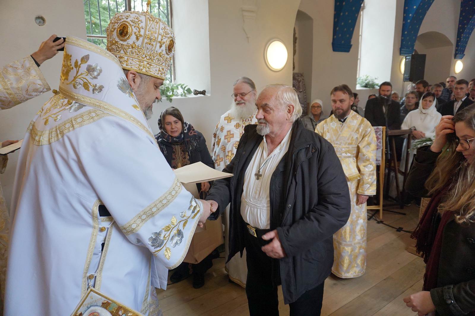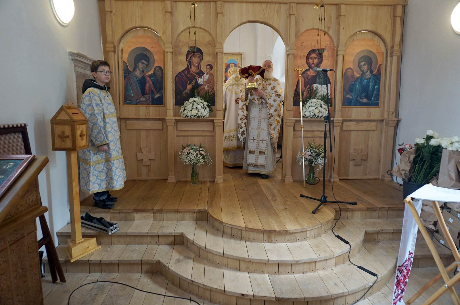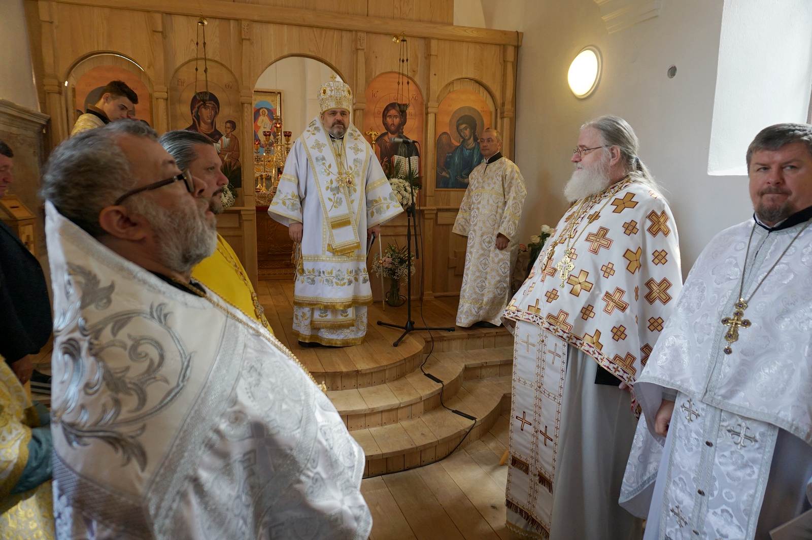 V závěru liturgie kázal vladyka a dále pokračovala slavnost poděkováním věřícím. Hovořil o tom, jak je krásné, že máme chrámy, kam můžeme přicházet a očišťovat se od svých hříchů, prosit Pána Boha o věčnou spásu i o pomoc v těžkostech našich pozemských životů. Při bohoslužbách nás Bůh přijímá, obdarovává, posiluje, inspiruje, léčí a pomáhá. Sklání se k nám jako milující a starostlivý Otec ke svými synů. Do chrámů přicházejí celé rodiny věřících, a tak víme, že až naše generace odejde k Pánu, budou se zde za nás modlit naše děti. Je to velká radost, když má církev nový chrám a věřící mají další posvátné místy, kde mohou získávat spásu pro své duše.