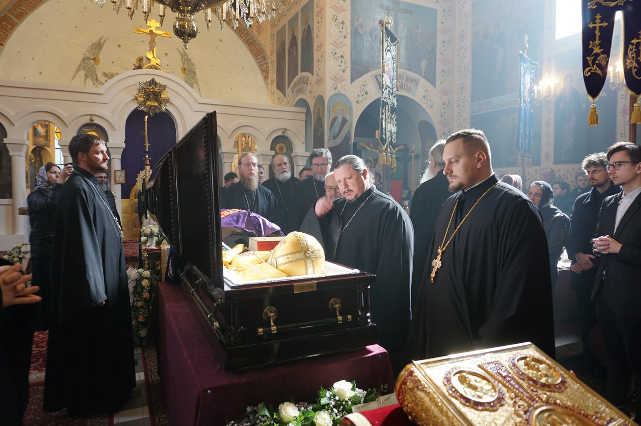 Poté začal od 11 hod. obřad archijerejského pohřbu, který vedl Blažený vladyka Rastislav a Přeosvícený vladyka Izaiáš, s nimiž sloužilo eparchiální duchovenstvo. Na závěr byla rakev se zesnulým nesena kolem chrámu.