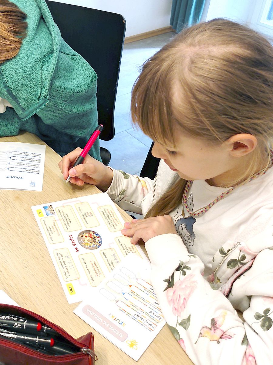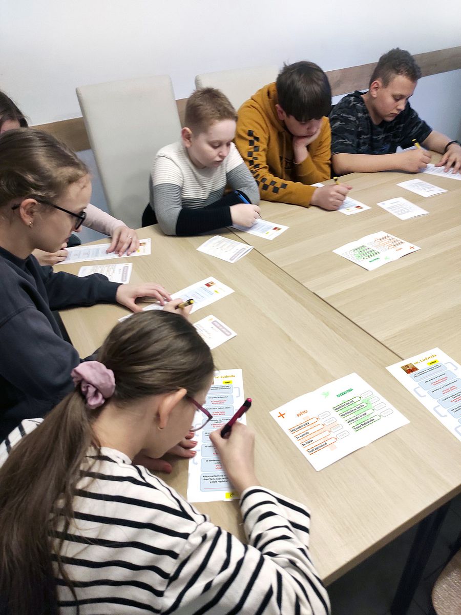 Zahájili jsme plnění Stezky sv. Václava. Stezka má čtyři části. První část je nazvaná Skutky, a děti v ní plní samostatné úkoly, které souvisí s jejich dobrovolnou pomocí svému okolí. Druhá část se jmenuje Světci, ve které děti prověřují své znalosti o vybraných světcích. Další část se jmenuje Modlitba. Pro její splnění, musí děti umět zazpívat vybrané modlitby. Závěrečná část Teologie obsahuje znalosti o základech křesťanství. Dnes děti splnily do Stezky několik úkolů. Prověřily si znalosti ze života sv. Ludmily, samostatně zpívaly velikonoční tropar a prokázaly, co vědí o svatých tajinách.