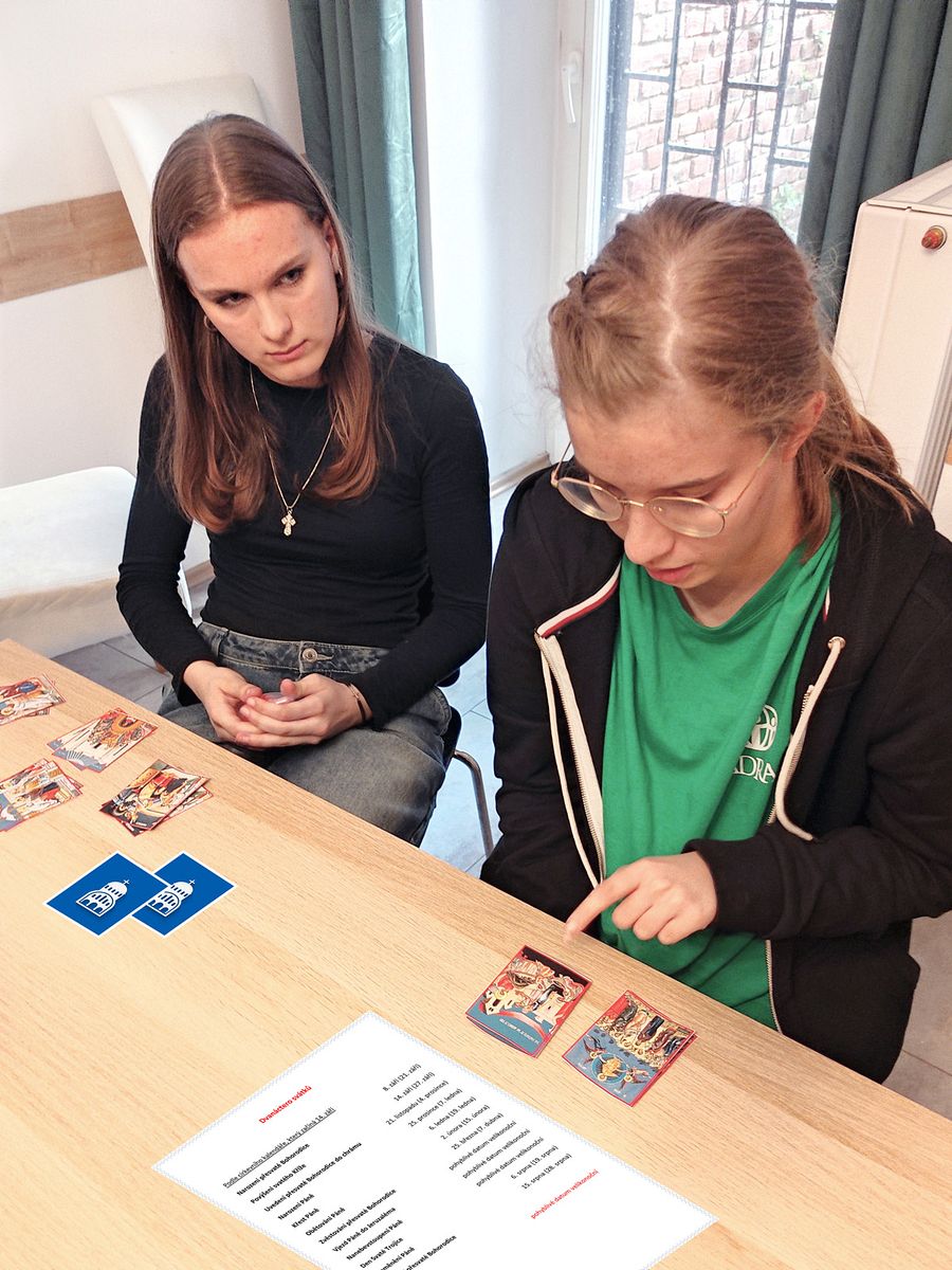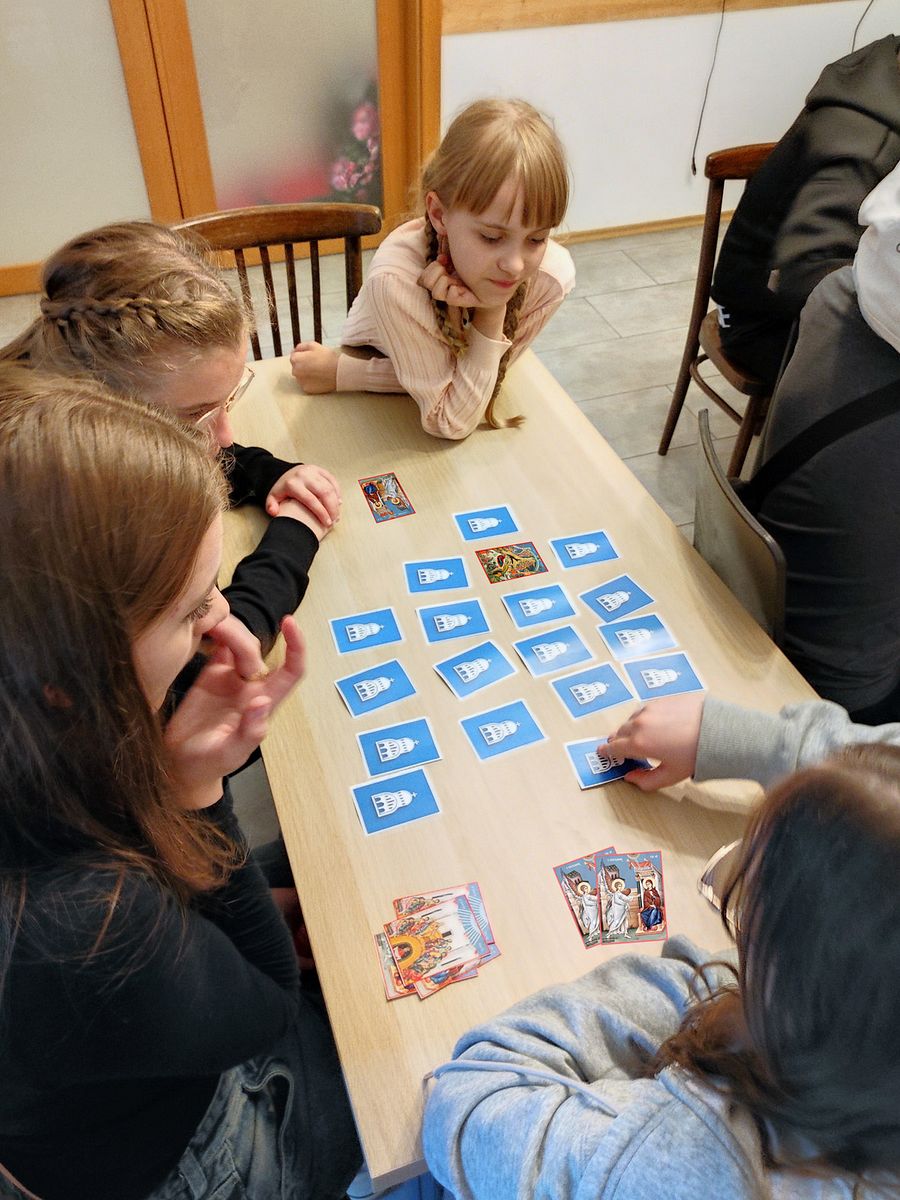 Věnovali jsme se Dvanácteru svátků. Pověděli jsme si o každém z nich, prohlédli si jednotlivé ikony svátků. Také jsme si zahráli ve skupinách pexeso s kartami jednotlivých svátků. Po ukončení hry musel každý pojmenovat svátky, které ve hře získal. Správně pojmenované karty si mohl nechat, špatně pojmenované karty odevzdal. Nakonec jsme plnili vědomostní test. Hodinu jsme si zpestřili hrou Maluj pouze 10 vteřin.