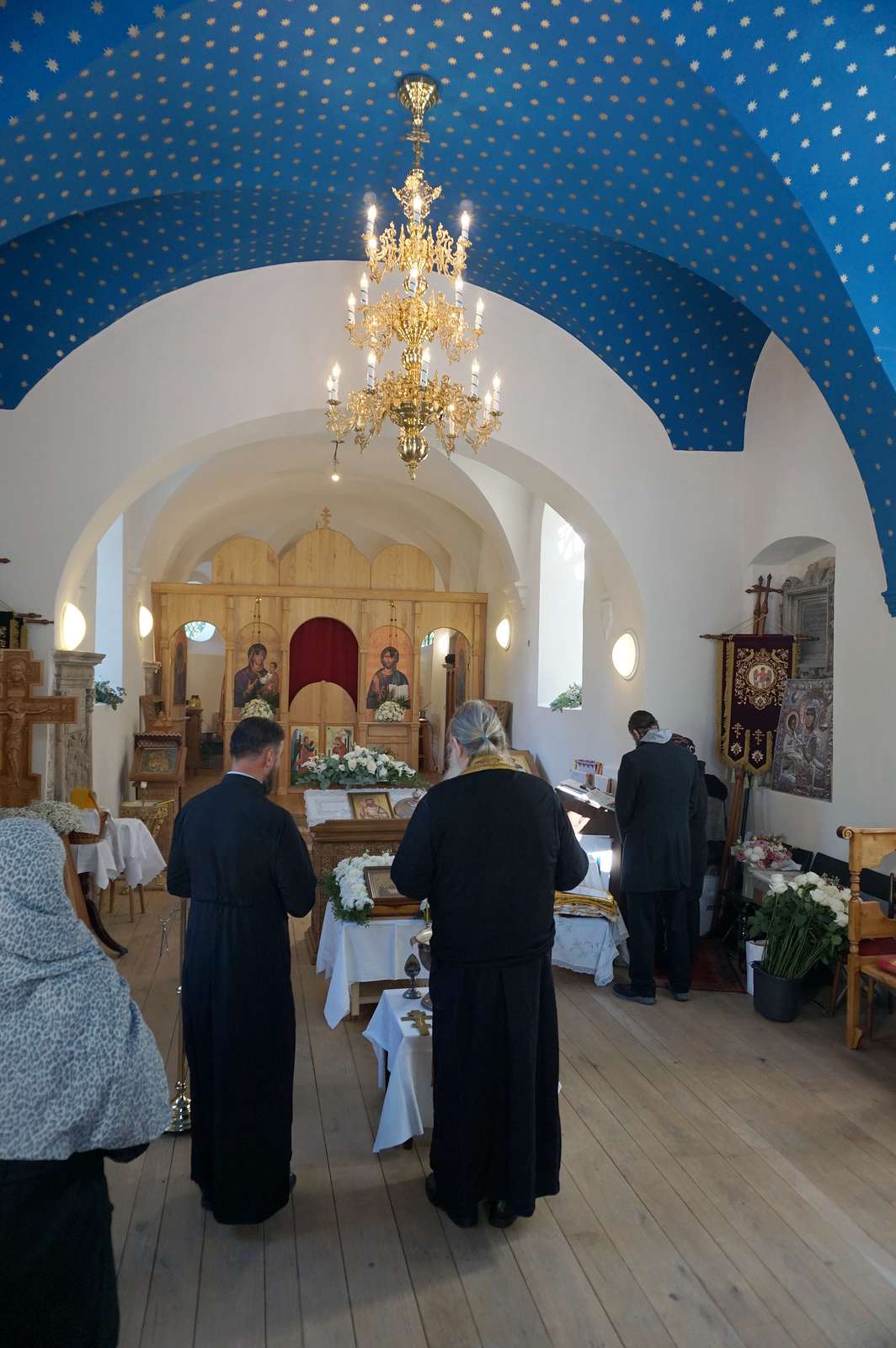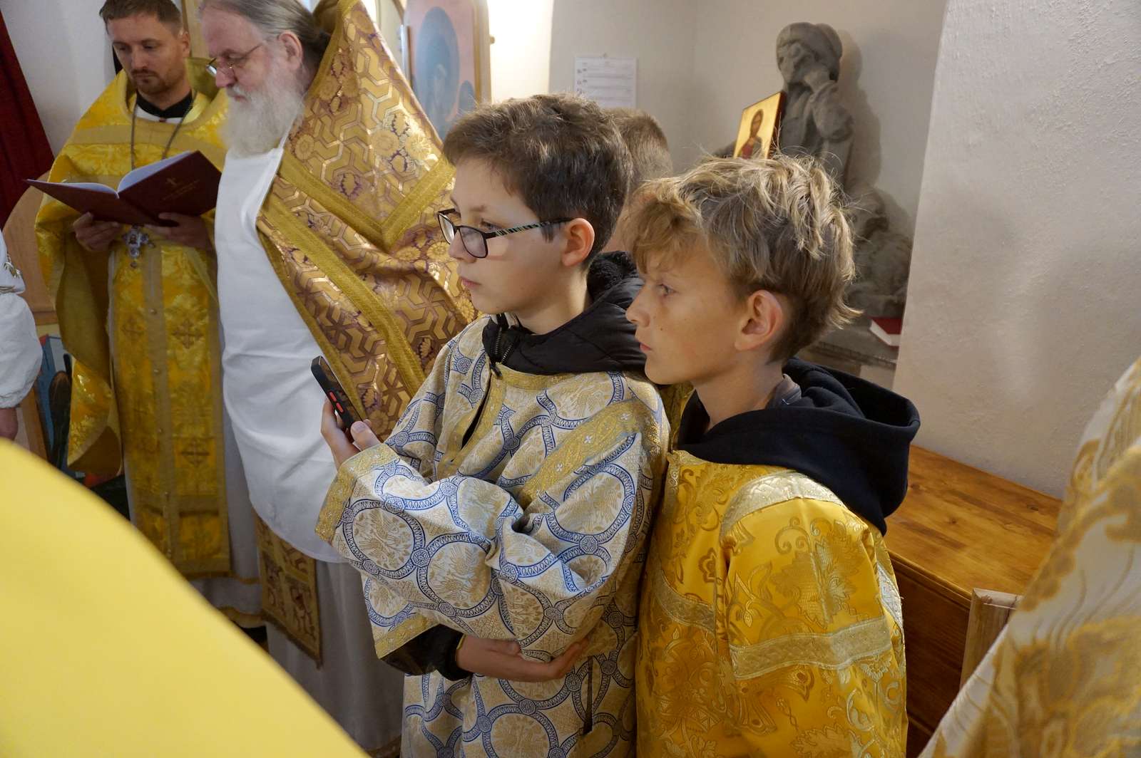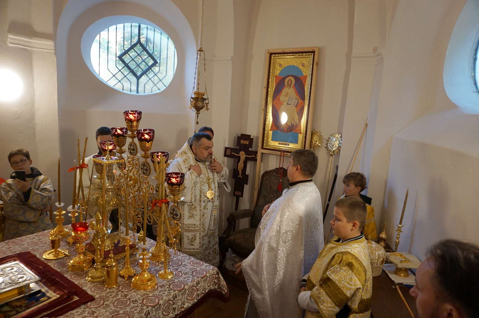 Po posvěcení prestolu se konala večerní bohoslužba, při které se zpíval tropar svátku Povýšení svatého Kříže (jehož opuštění na sobotu připadlo) a tropar sv. Janu Křtiteli, jemuž byl prestol zasvěcen.