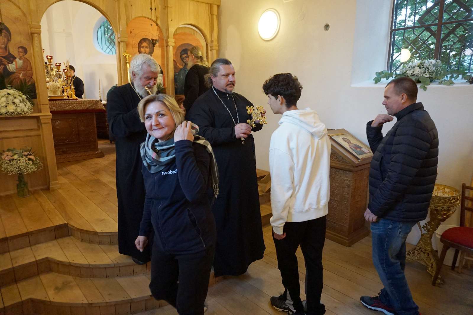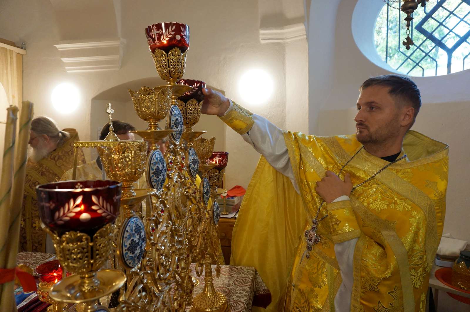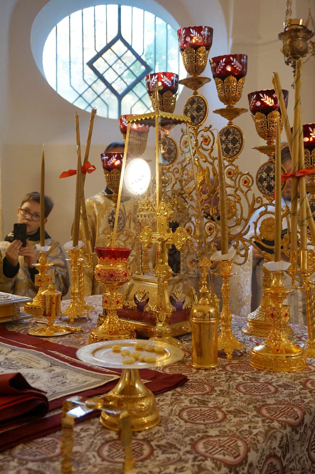 Po posvěcení prestolu se konala večerní bohoslužba, při které se zpíval tropar svátku Povýšení svatého Kříže (jehož opuštění na sobotu připadlo) a tropar sv. Janu Křtiteli, jemuž byl prestol zasvěcen.
