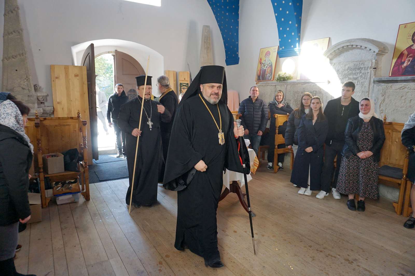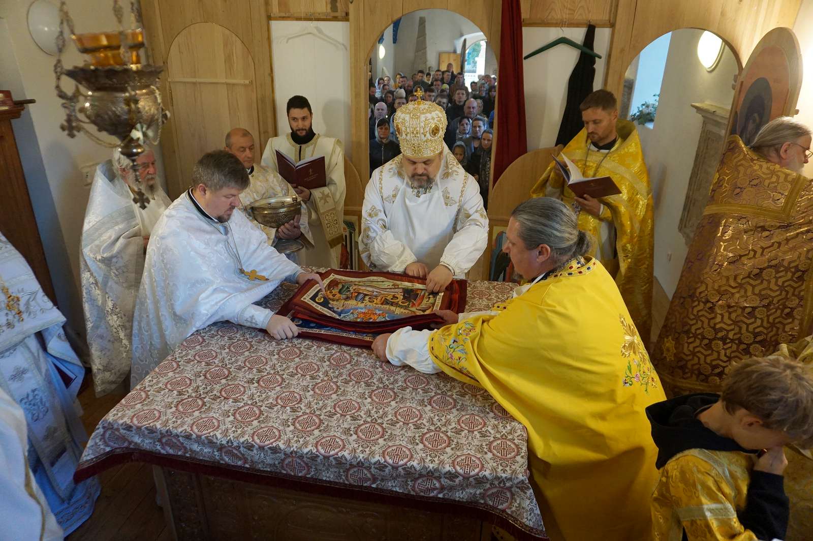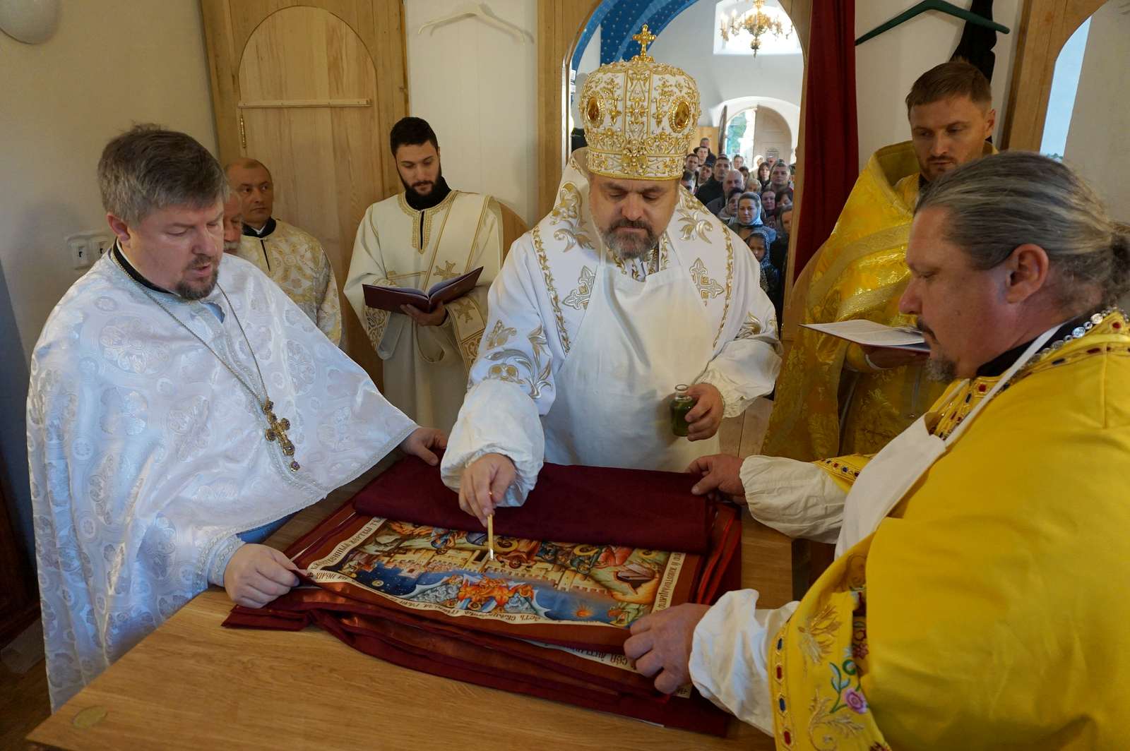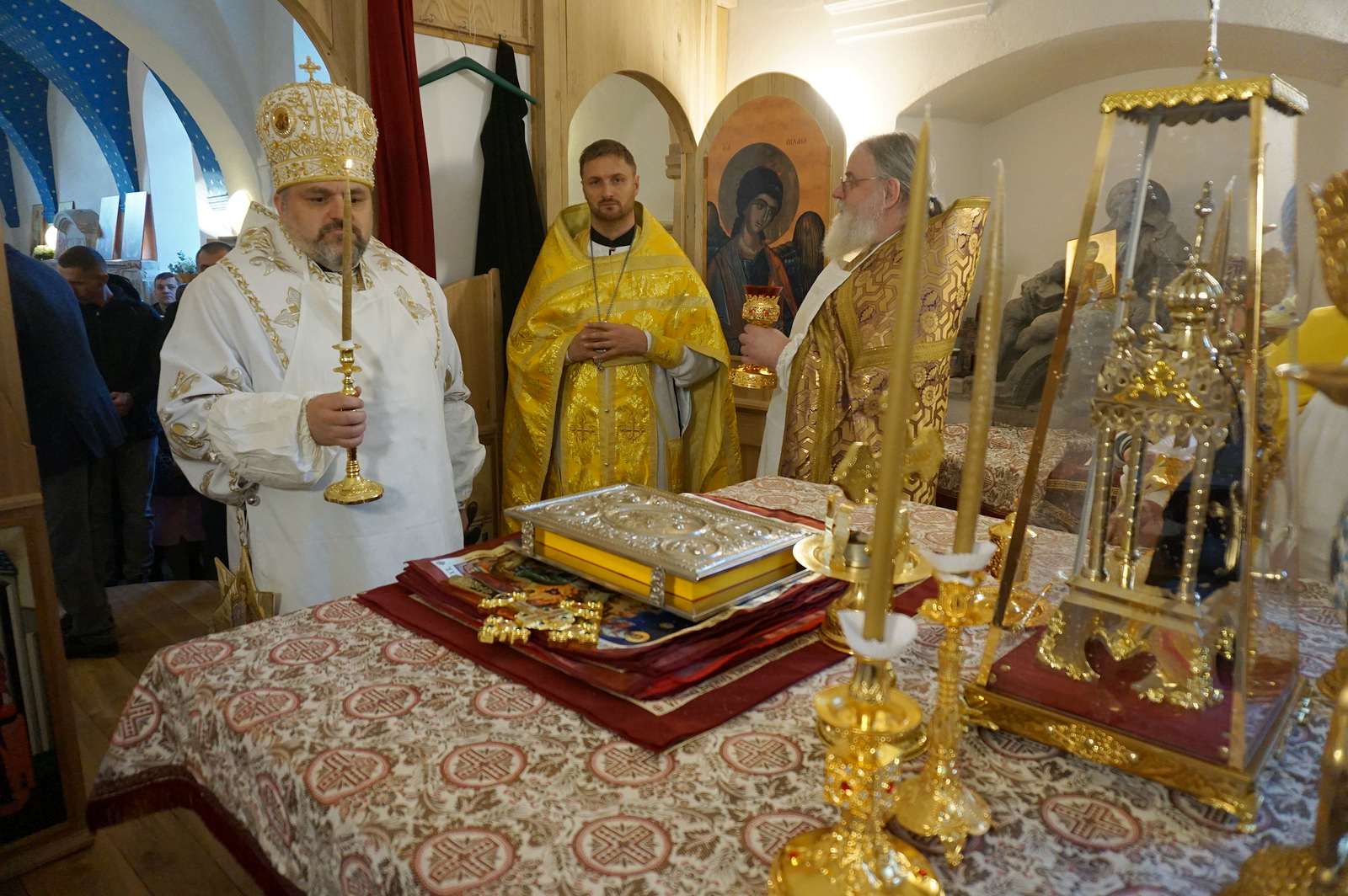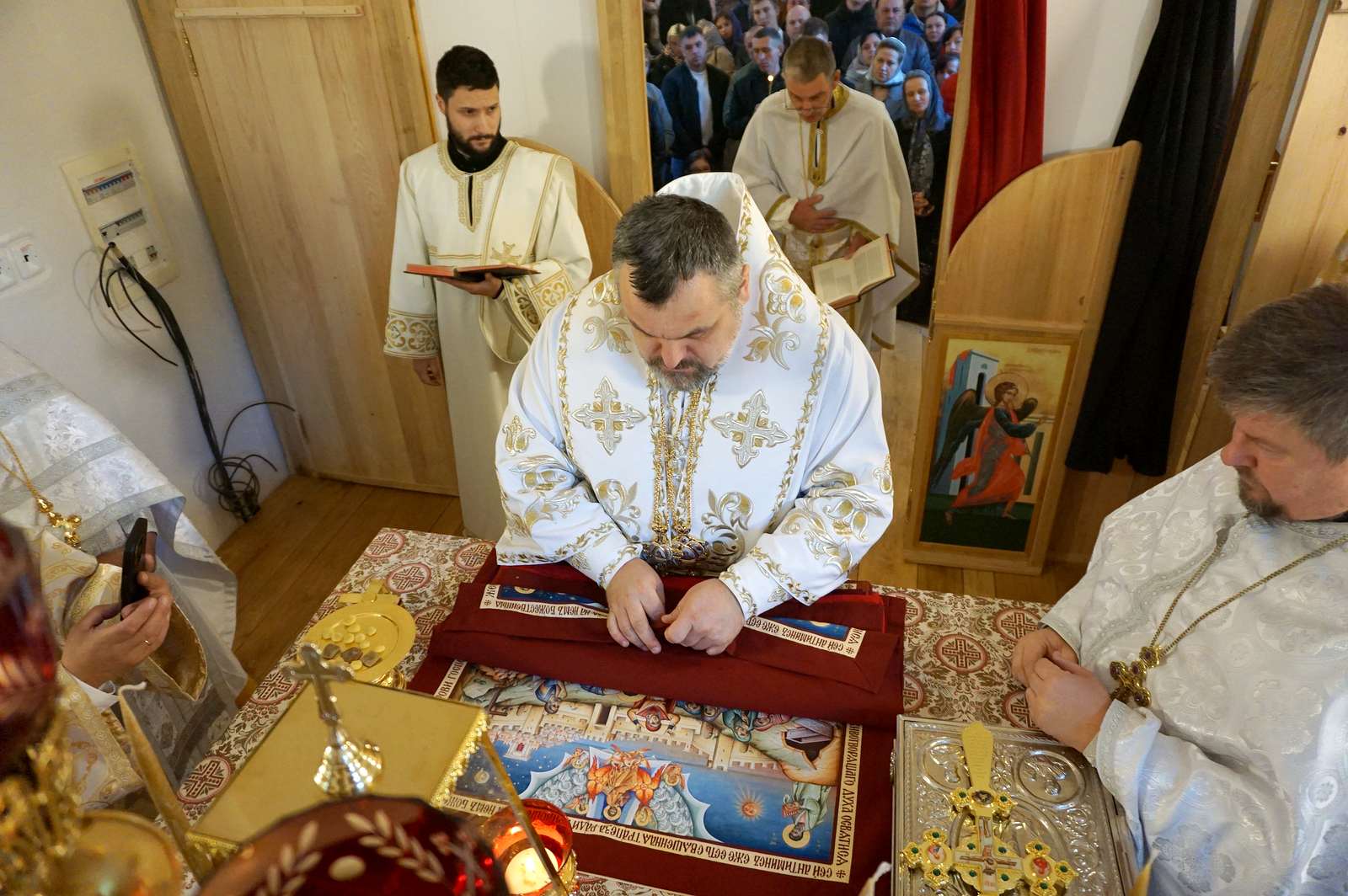 V pátek 3. října jsme se tedy dobrali k dlouho očekávané události – posvěcení oltářního stolu čili mensy, kde se přináší nekrvavá oběť. V 16 hod. přijel náš Přeosvícený vladyka Izaiáš, biskup olomoucko-brněnský, s doprovodem. Přijela už i řada duchovních. Obřad velkého svěcení mohl začít. Bohoslužebný řád probíhal podle řeckého způsobu, který je trochu delší než ruský a má jiné (myslím, že logičtější) pořadí jednotlivých součástí. S požehnáním vladyky jsme nechali oponu ikonostasu rozhrnutou a královskou bránu otevřenou. Věřící byli vyzváni, aby se shromáždili hned pod ambonem a zblízka mohli pozorovat celý postup obřadu.