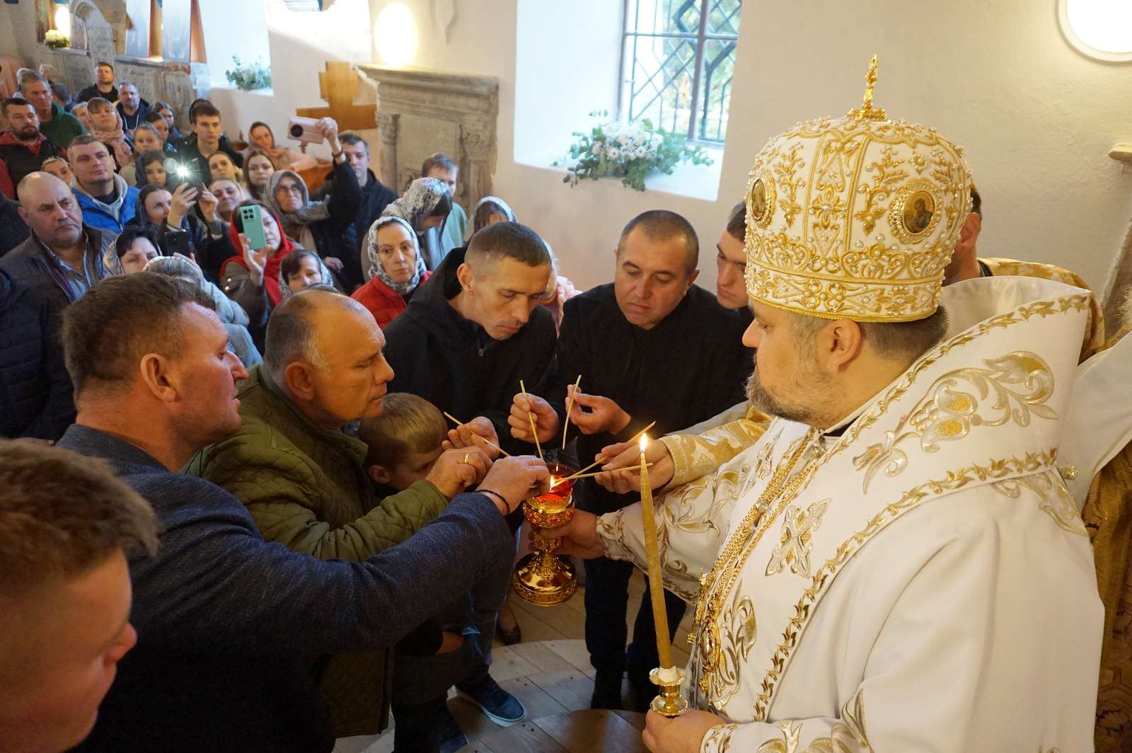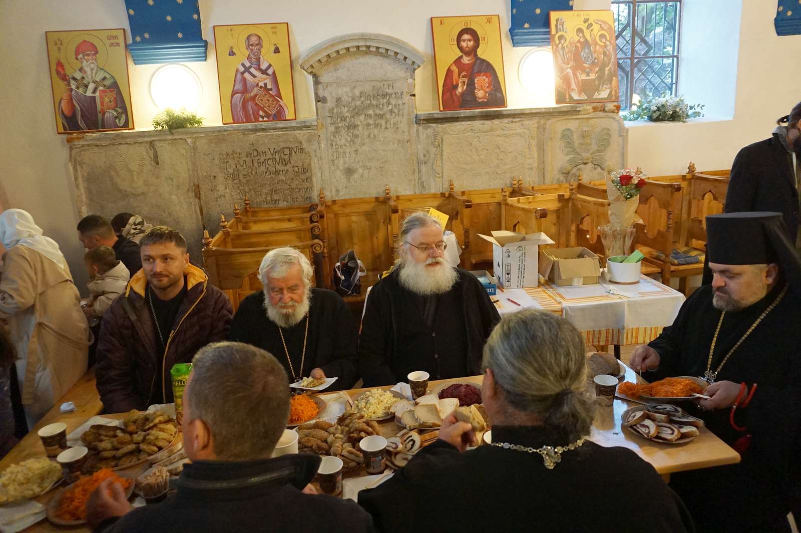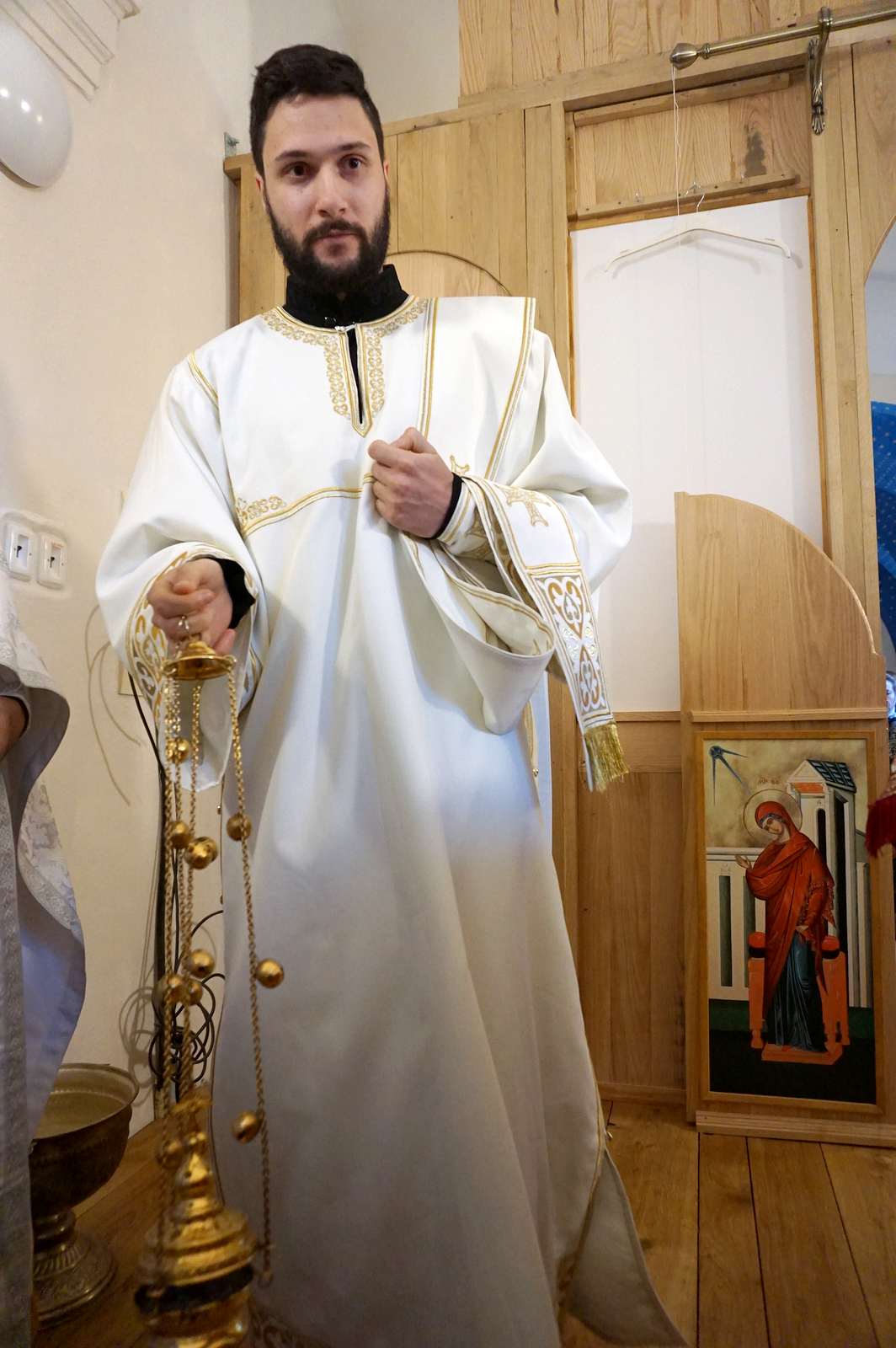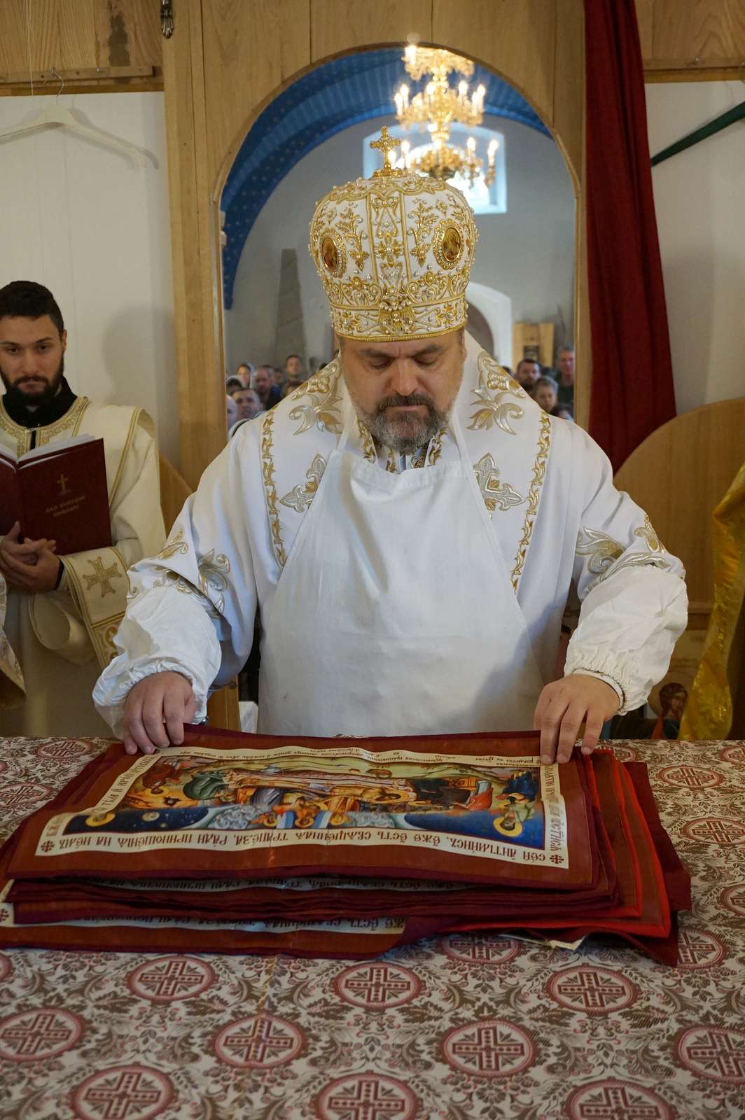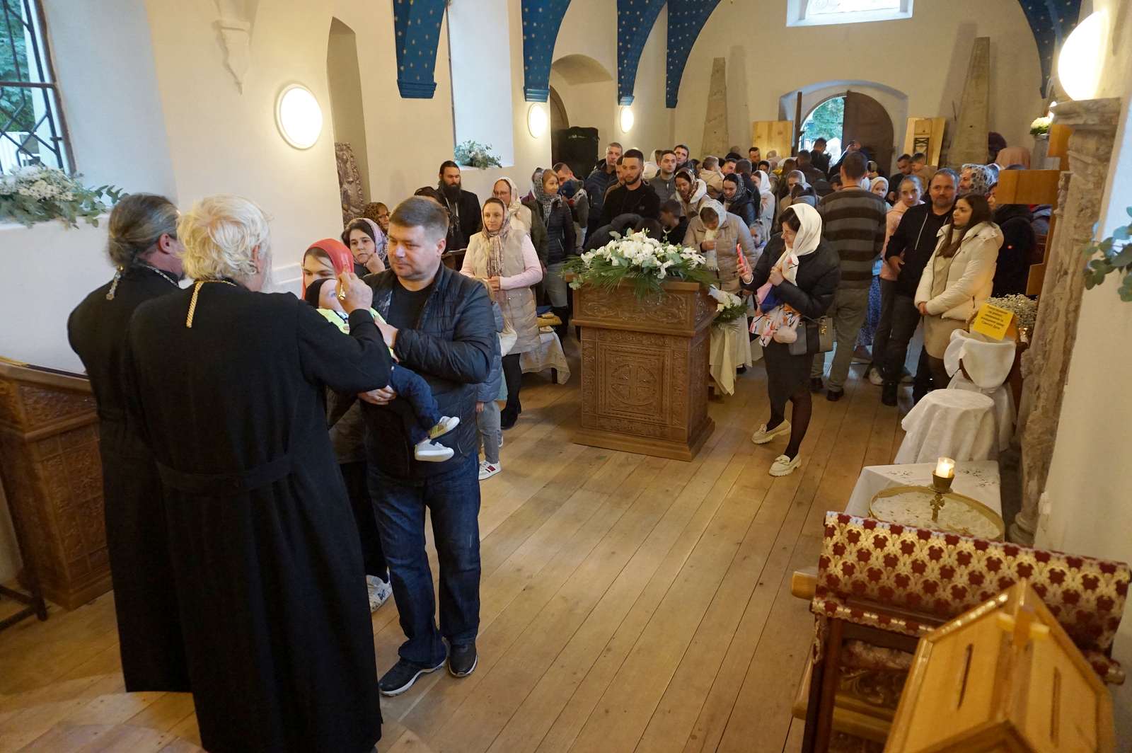 V pátek 3. října jsme se tedy dobrali k dlouho očekávané události – posvěcení oltářního stolu čili mensy, kde se přináší nekrvavá oběť. V 16 hod. přijel náš Přeosvícený vladyka Izaiáš, biskup olomoucko-brněnský, s doprovodem. Přijela už i řada duchovních. Obřad velkého svěcení mohl začít. Bohoslužebný řád probíhal podle řeckého způsobu, který je trochu delší než ruský a má jiné (myslím, že logičtější) pořadí jednotlivých součástí. S požehnáním vladyky jsme nechali oponu ikonostasu rozhrnutou a královskou bránu otevřenou. Věřící byli vyzváni, aby se shromáždili hned pod ambonem a zblízka mohli pozorovat celý postup obřadu.