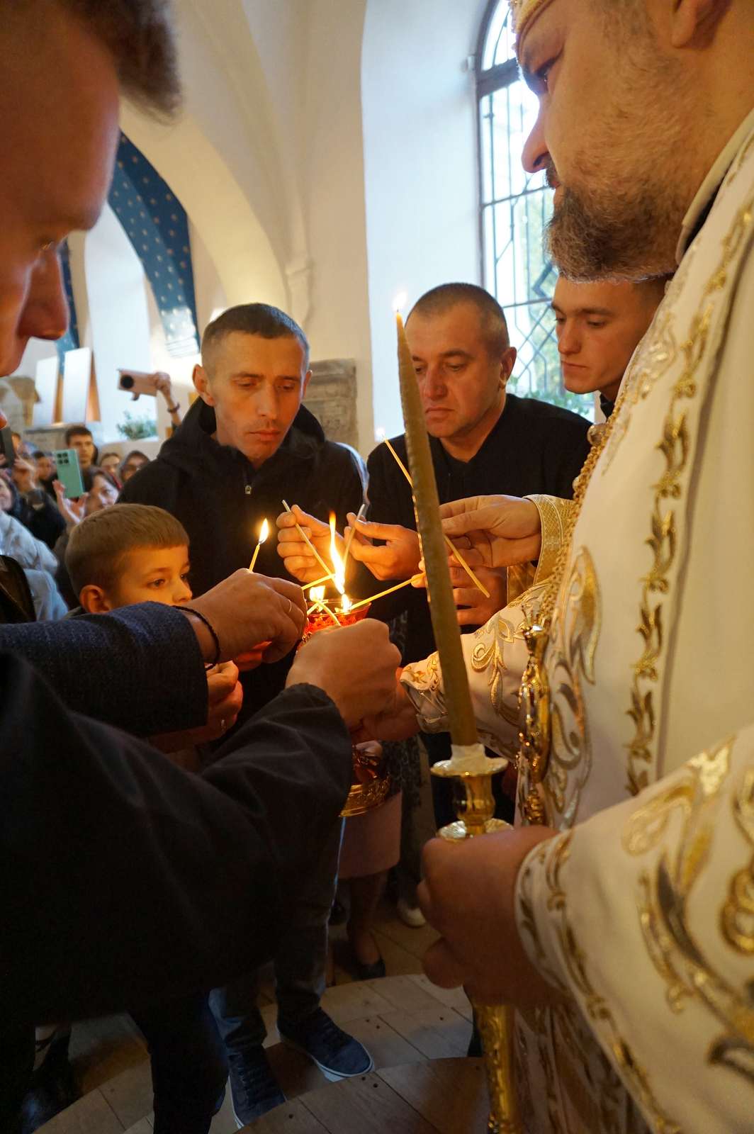 Na závěr posvěcení prestolu vyšel vladyka k věřícím se zažehnutou svící, požehnal jim se slovy: „Světlo Kristovo osvěcuje všechny!“ Věřící si od něj zapalují své svíčky, ale před nimi přistoupili pod ambon ti, kteří se svou prací či dary nejvíce zasloužili o otevření tohoto chrámu k pravoslavným bohoslužbám, zapálili své svíčky od vladykovy svíce, načež měli tu výsadu společně svými svícemi rozžehnout novou lampádu, kterou pak vladyka postavil na svatý prestol jako první světlo, které na něm po jeho posvěcení hoří. Posléze kněží od vladykovy svíce rozsvítili sedmisvícen a další svíce v oltáři.