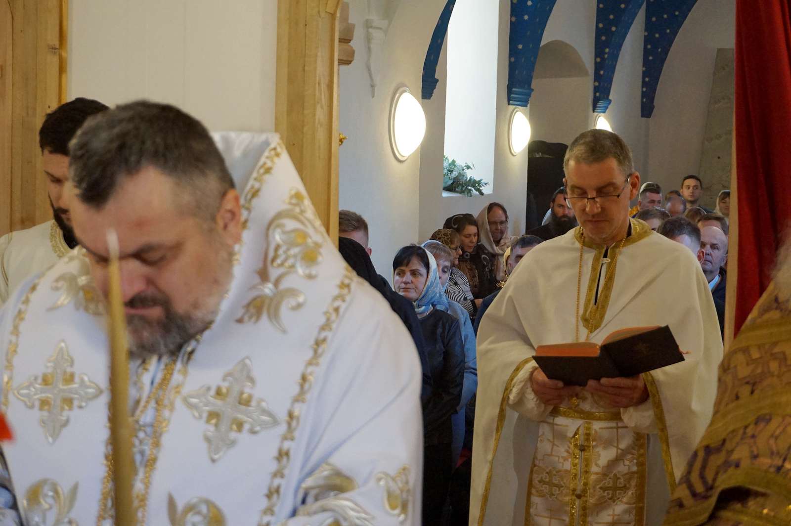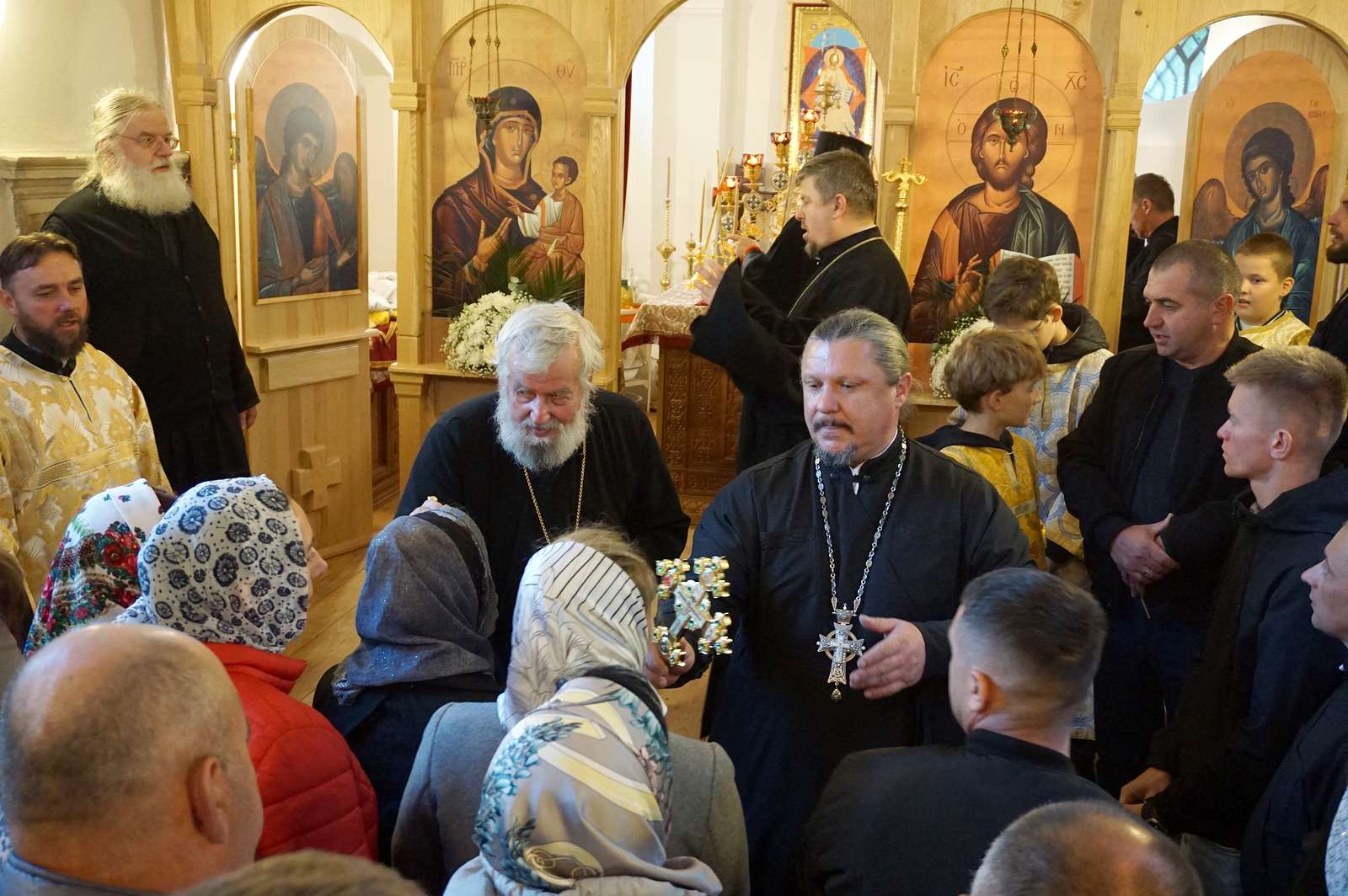 V průběhu obřadu a na závěr promlouval k přítomným vladyka i duchovní správce. Všichni jsme s úctou poděkovali věřícím za jejich námahu, dílo, dary, čas, modlitby a vše, čím jakkoliv přispěli ke zbudování tohoto chrámu. Je to svědectví jejich lásky k Bohu a potažmo lásky k Jeho Církvi, čili k pravoslaví. Vladyka připomněl výrok z evangelia o tom, že každý vlas na našich hlavách je spočítaný (Mat 10,30; Luk 12,7), tak na každého pamatuje Bůh, a o každém je v nebeských knihách zapsáno, co zde učinil pro svou spásu, pro Církev, pro spásu druhých lidí. Vše dojde své odměny. To jsou naše poklady, které si střádáme na nebi, jak to po nás Kristus Pán žádá. (Mat 6,19-21)