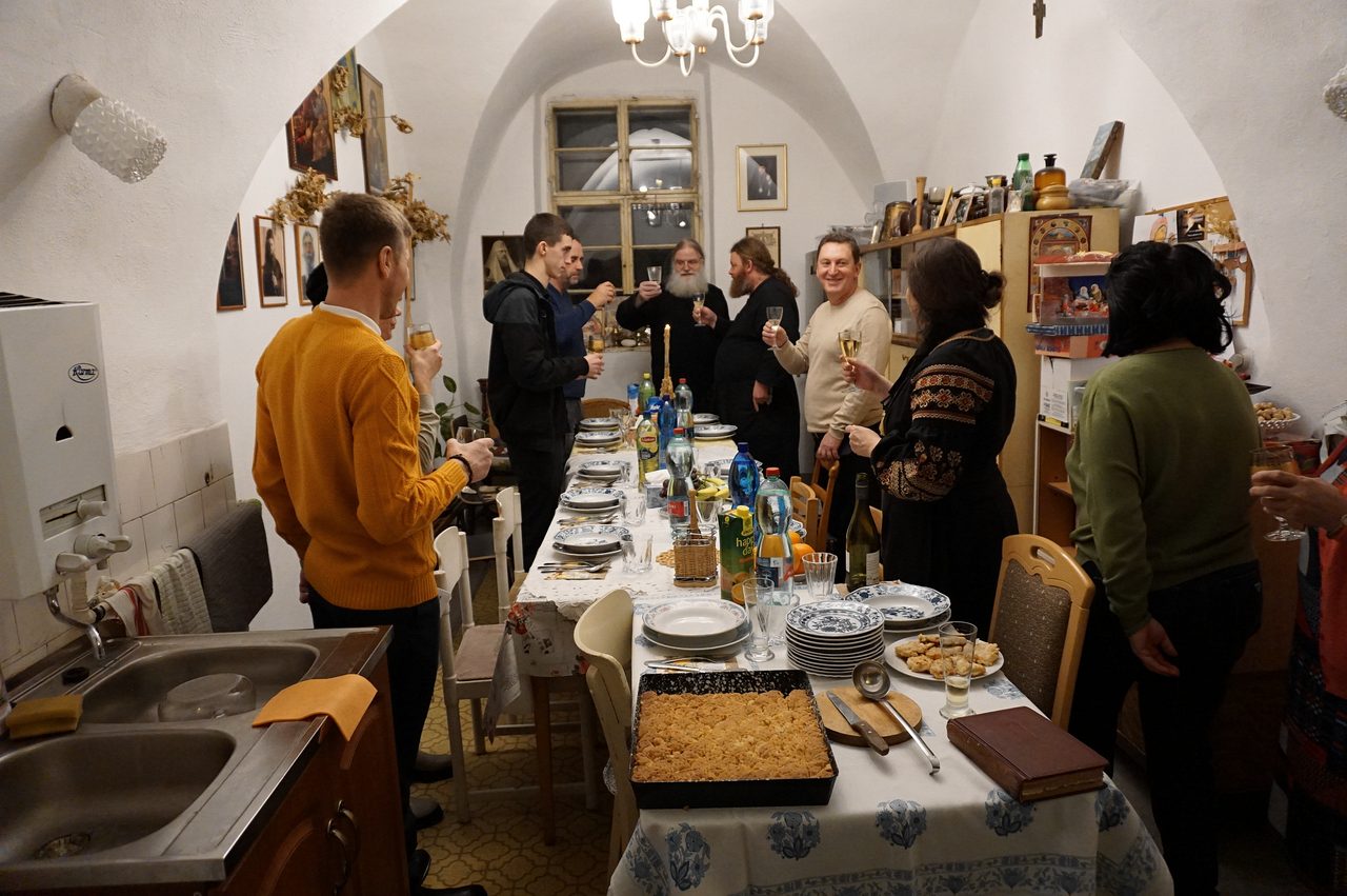 Ráno, v den svátku jsme pokračovali v duchovní slavnosti sváteční jitřní podle Gorazdova sborníku, liturgií sv. Jana Zlatoústého, při níž bylo jako obvykle přečteno poselství posvátného synodu. Po něm jsme vyjádřili naději, že vtělený Boží Syn, který sklonil nebesa a stal se maličkým, chudým, bezmocným a pronásledovaným dítětem, skloní se k našim pronásledovaným bratrům, na které dopadají hrůzy války.