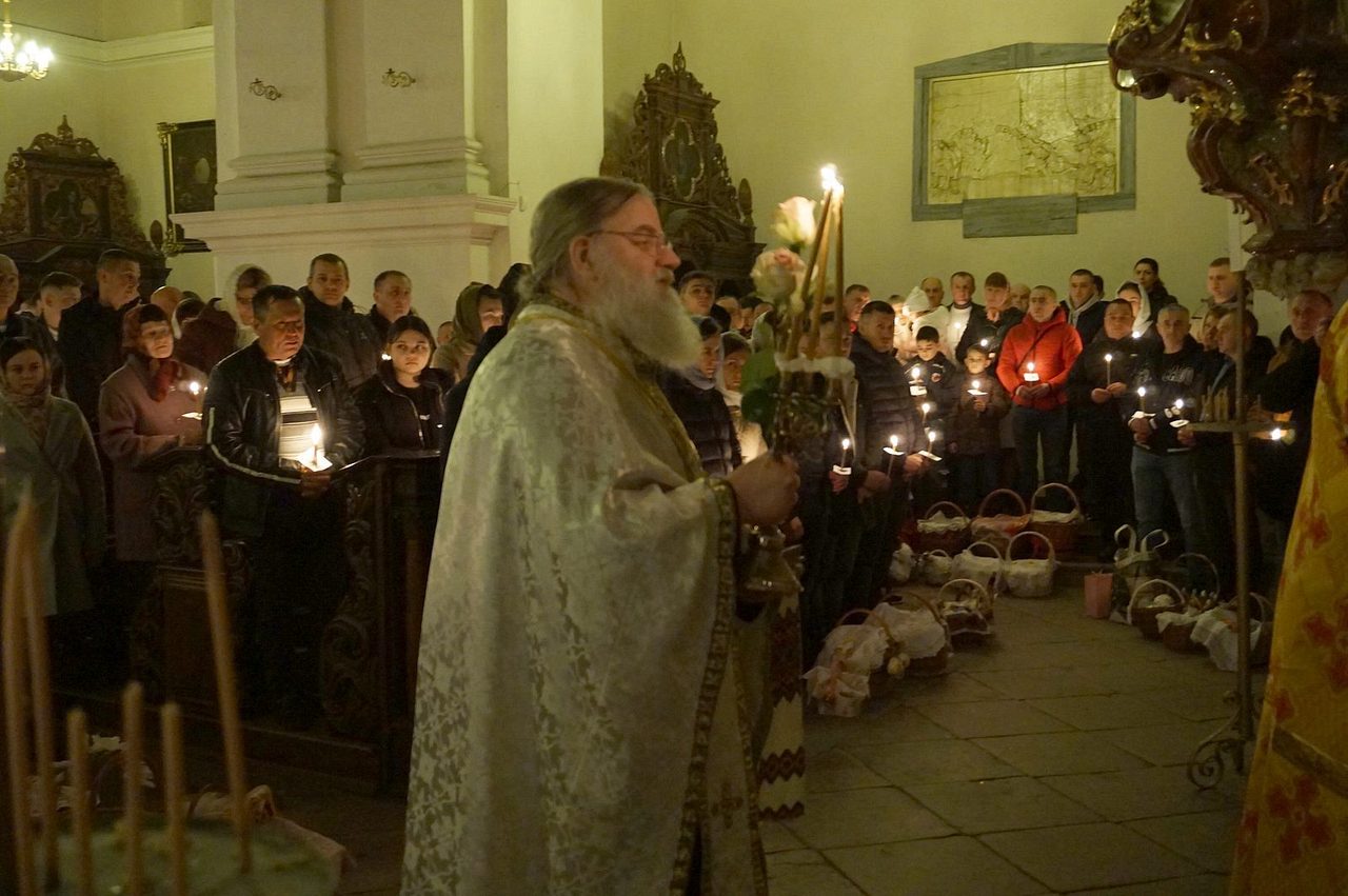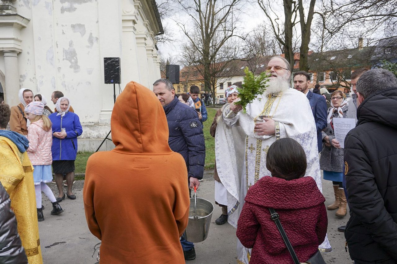 Podle starého juliánského kalendáře slavili pravoslavní Velikonoce letos o týden později, než jsou občanské svátky. Díky pochopení a vstřícnosti římskokatolické farnosti sv. Jakuba se mohli všichni místní shromáždit k oslavě největšího křesťanského svátku, čili Paschy na dvou bohoslužbách ve vypůjčených chrámech. První velikonoční bohoslužba se konala od půlnoci ze soboty na neděli 16. dubna ve velkém chrámu sv. Ignáce na Masarykově náměstí. Chrám byl zcela zaplněn a několik stovek věřících čekalo na posvěcení košíků s paschálními pokrmy venku na náměstí před chrámem. Přibližně zde bylo 1500 lidí.