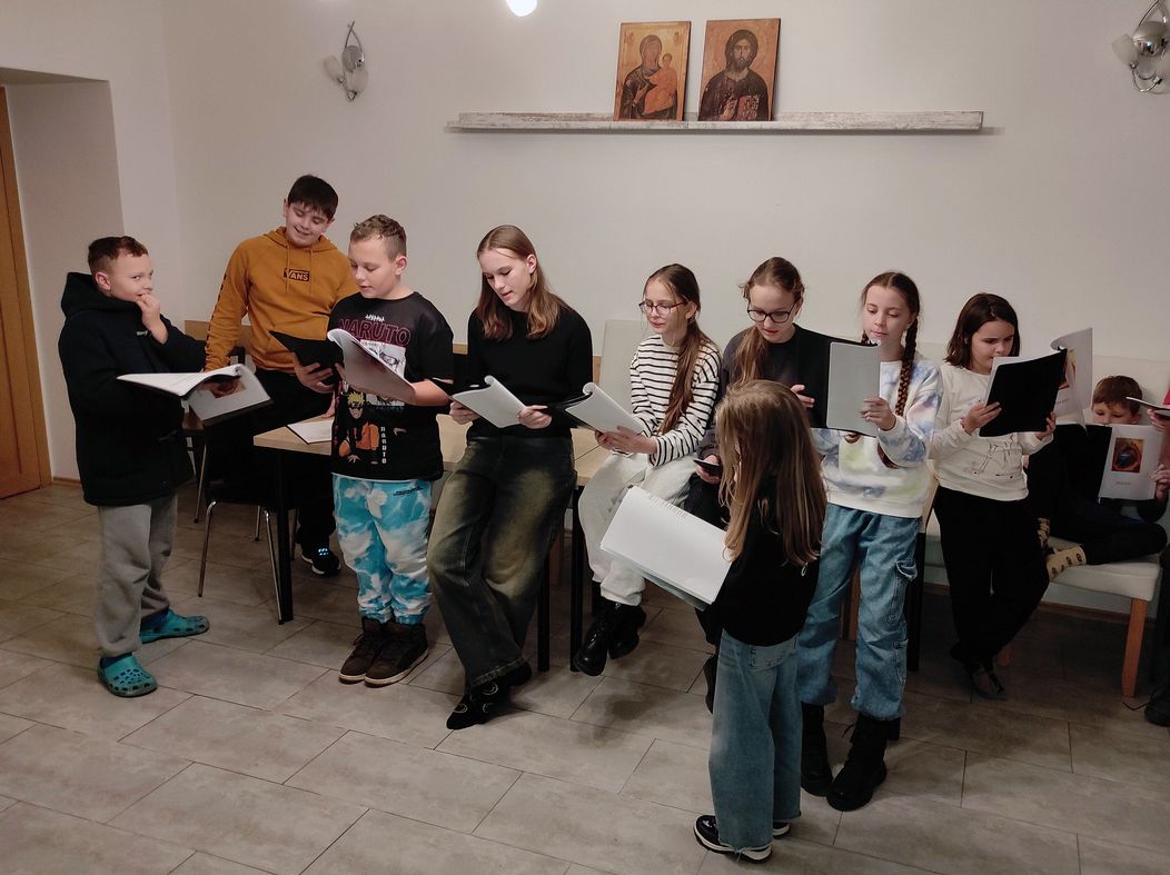Pokračovali jsme s výukou zpěvu podle zpěvníku ke svaté Liturgii. Naučili jsme se zpívat 2. Antifonu. Hledali jsme obrázky nakreslené na papíře, připevněném na stěně. Mezi obrázky byly napsány také špatné lidské vlastnosti. Tyto jsme nahrazovali vlastnostmi dobrými. Pověděli jsme si více o Desateru Božích přikázání. Ke každému přikázání jsme si vytvořili předsevzetí a přiřadili k němu jednu dobrou lidskou vlastnost, která plnění přikázání charakterizuje. Hodinu jsme si zpestřili hrou na Nervíky.
